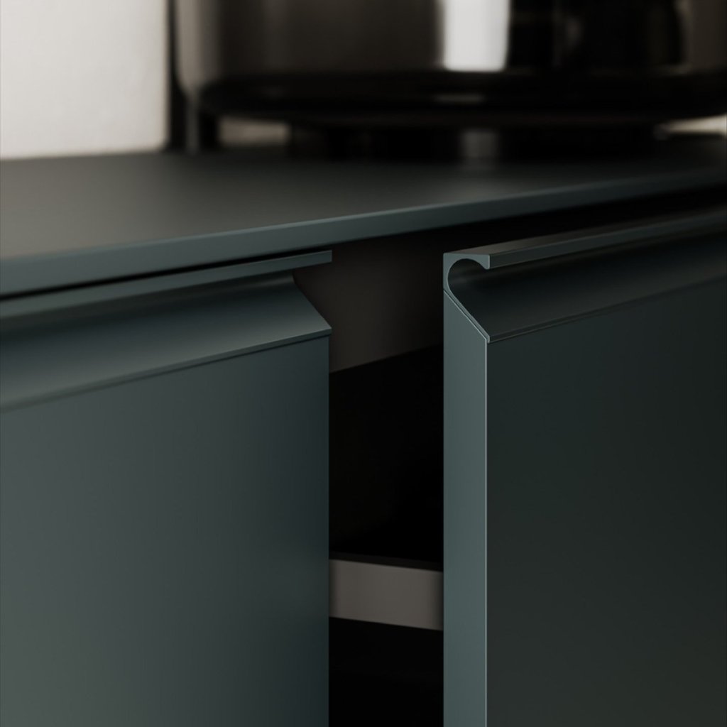 La nuova maniglia Sail ha un design esclusivo firmato dallo studio ruga.perisinotto. Si presenta integrata nell’anta, offrendo una presa confortevole sia nelle basi che nelle colonne.